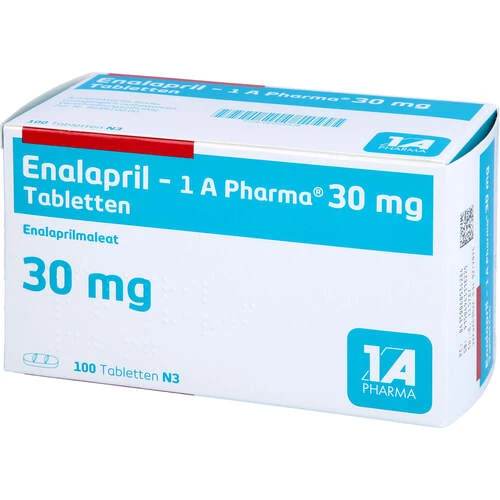 Enalapril 30 mg Tablets contain the active substance enalapril, which belongs to the group of angiotensin-converting enzyme (ACE) inhibitors. The medicine works by relaxing blood vessels, reducing the workload on the heart, and helping to stabilize blood pressure.